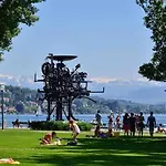 Апартаменти Stylish Garden-Gem By Lake: Pet-Friendly & Central розташовані на відстані 10 хвилин їзди машиною від Цюрихського зоопарку, звідки відкривається вид на внутрішній дворик. Апартаменти розташовані в межах 3 км від залізничного вокзалу Головний Цюриха та біля автовокзалу Botanischer Garten.